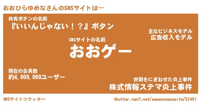 | 伝説のあだ名 | 『伝説のスナイパーおおひらゆめな』 |