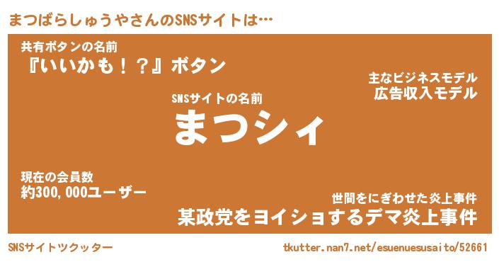 | 肩書あだ名 | 『まつばらしゅうや店長』 |