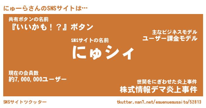 | 男性向けラノベタイトル風あだ名 | 『にゅーらの憂鬱』 |