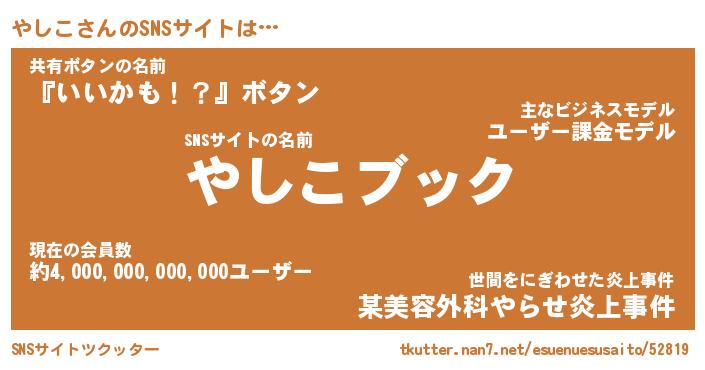 | ヘコむあだ名 | 『やしもー』『酢こんぶ』『やし太郎』 |