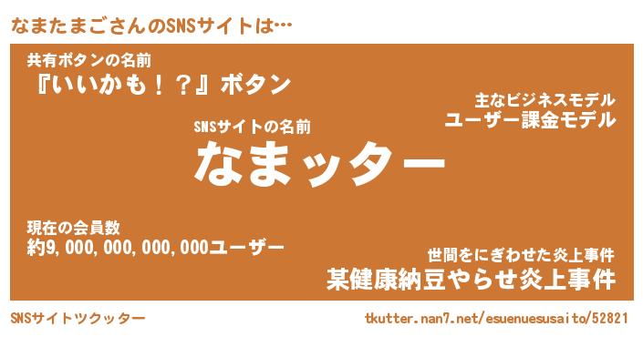| ファンタジー風あだ名 | 『ナマフェル』『エターナルナマタマゴー』 |