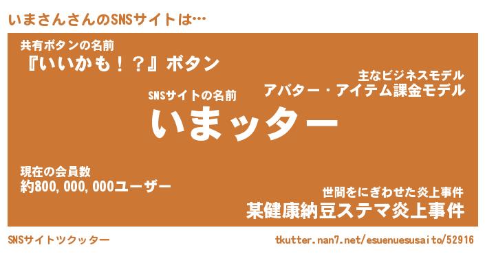 | 意味不明あだ名 | 『ペロリンいまさん』『永久保存いまさん』 |