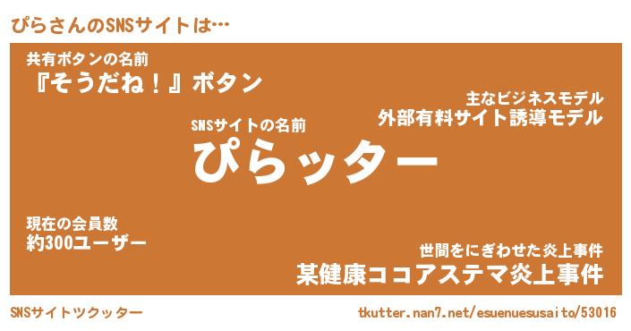 | 胡散臭い通販商品みたいなあだ名 | 『億万長者になれるブレスレット…その名も「ぴら」』 |