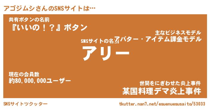 | 料理風あだ名 | 『節約★アゴジムシと油揚げの玉子丼』 |