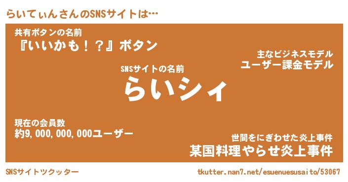 | ヘコむあだ名 | 『らいもー』『なまこ酢』『らい太郎』 |