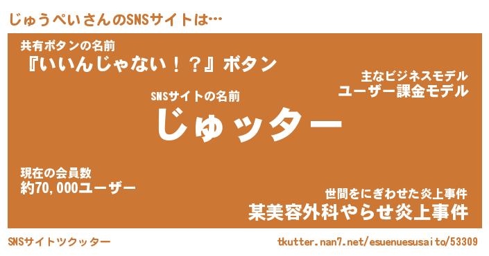| 胡散臭い通販商品みたいなあだ名 | 『億万長者になれるブレスレット…その名も「じゅうぺい」』 |