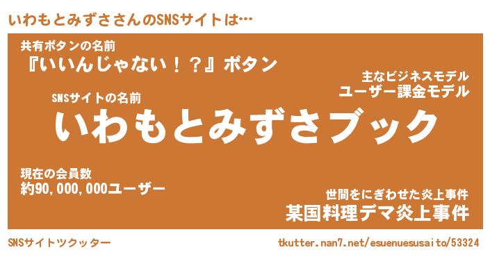 | 胡散臭い通販商品みたいなあだ名 | 『億万長者になれるブレスレット…その名も「いわもとみずさ」』 |