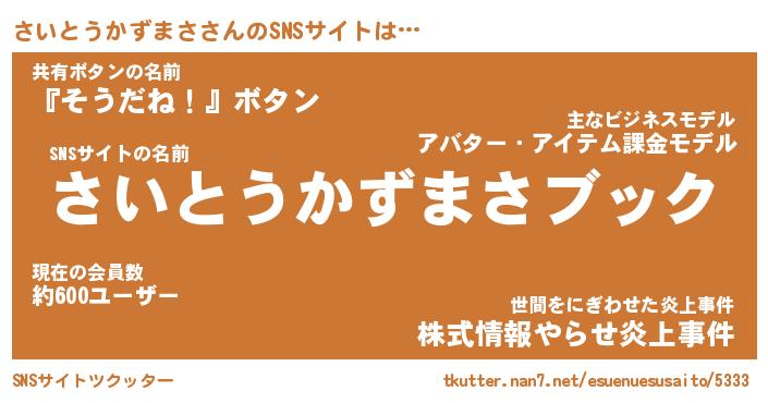 | 肩書あだ名 | 『さいとうかずまさ御曹司』 |
