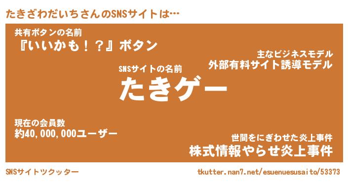 | 男性向けラノベタイトル風あだ名 | 『たきざわだいちの憂鬱』 |