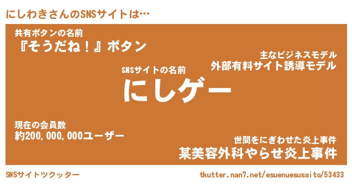 | 胡散臭い通販商品みたいなあだ名 | 『必ず成功する霊験あらたかなお札…その名も「にしわき」』 |