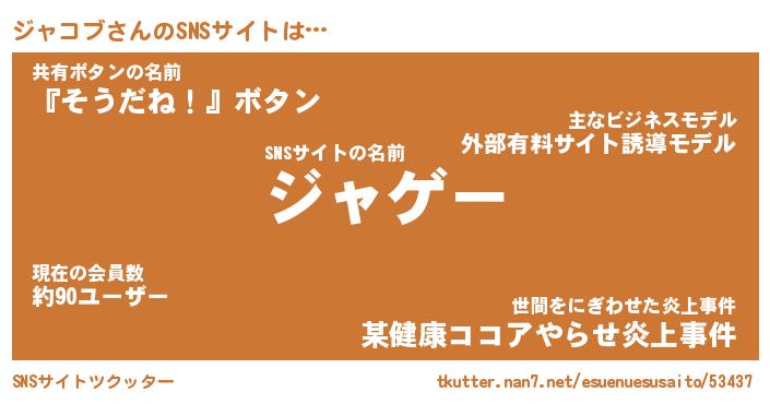 | 意味不明あだ名 | 『ペロリンジャコブ』『永久保存ジャコブ』 |