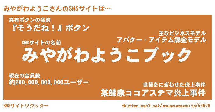 | 肩書あだ名 | 『みやがわようこCEO』 |