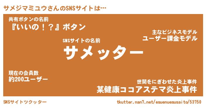 | 伝説のあだ名 | 『封印されしスナイパーサメジマミユウ』 |
