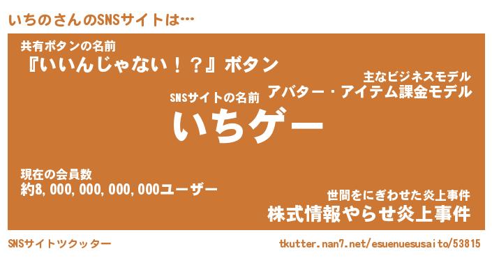 | 肩書あだ名 | 『いちの社長』『いちの総理大臣』 |