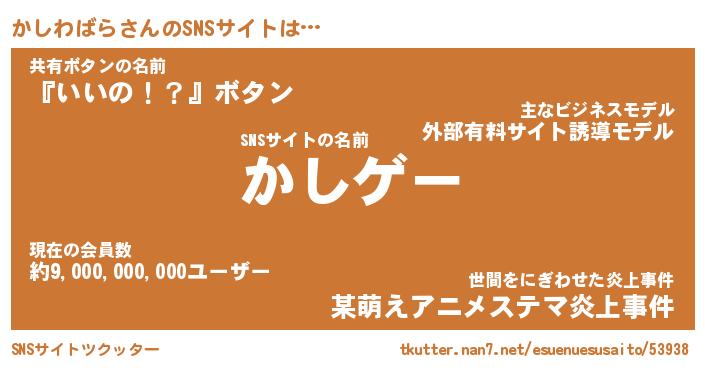 | ファンタジー風あだ名 | 『カシフェル』『エターナルカシワバラー』 |