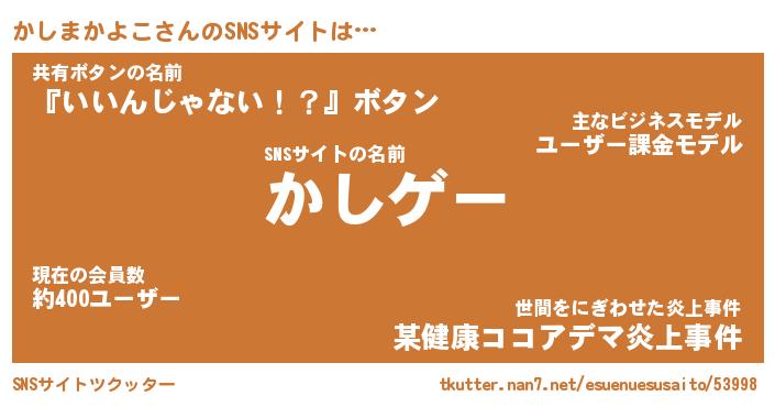 | ヘコむあだ名 | 『かしもー』『豆乳』『かし太郎』 |