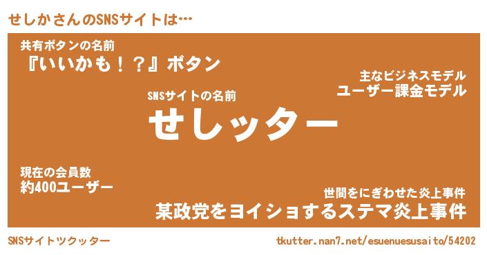 | 肩書あだ名 | 『せしか店長』『せしか大統領』 |