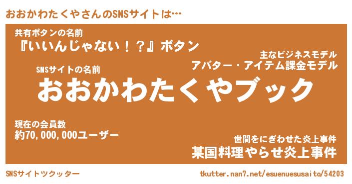 | 伝説のあだ名 | 『封印されしスナイパーおおかわたくや』 |