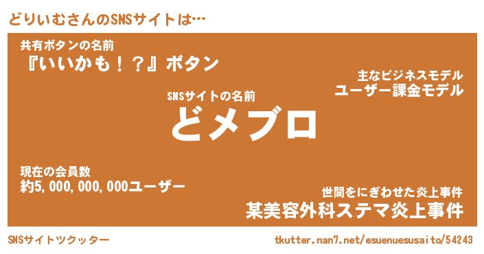 | 肩書あだ名 | 『どりいむ店長』『どりいむ総理大臣』 |