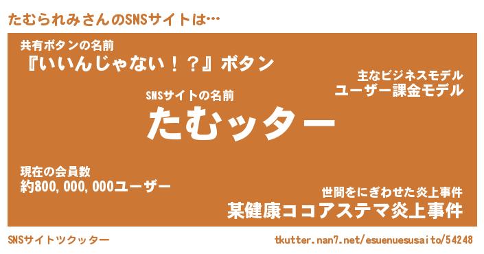 | 胡散臭い通販商品みたいなあだ名 | 『億万長者になれる水晶球…その名も「たむられみ」』 |
