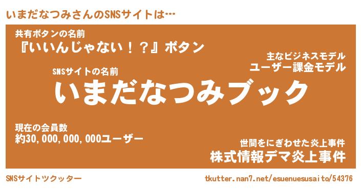 | ヒーロー風カッコイイあだ名 | 『スーパーイマダナツミ』『魔戒騎士イマ』 |