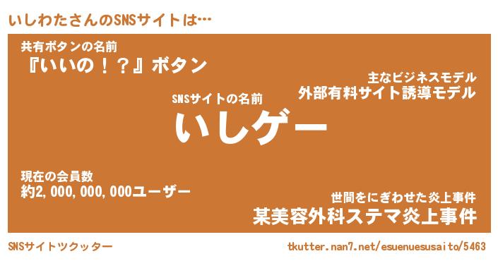 | ヘコむあだ名 | 『いしにー』『豆乳』『いしぷりん』 |