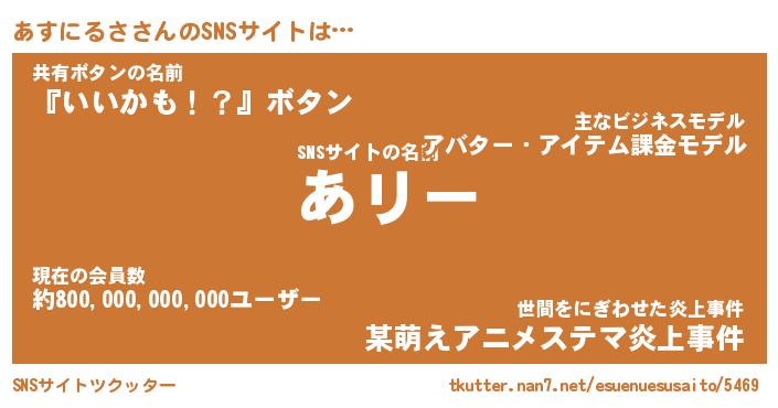 | 肩書あだ名 | 『あすにるさ店長』『あすにるさ大統領』 |