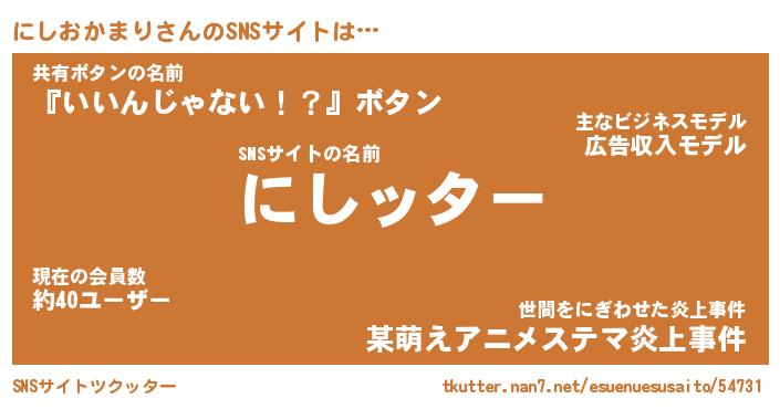 | ファンタジー風あだ名 | 『ニシフェル』『ファントムニシス』 |