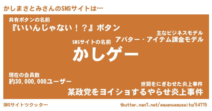 | 肩書あだ名 | 『かしまさとみ社長』『かしまさとみ班長』 |