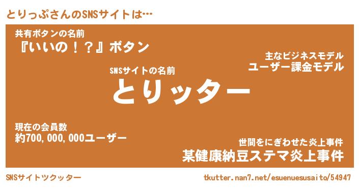 | 肩書あだ名 | 『とりっぷCEO』『とりっぷ総理大臣』 |