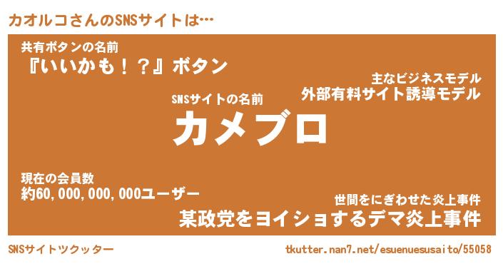 | 意味不明あだ名 | 『ペロリンカオルコ』『永久保存カオルコ』 |