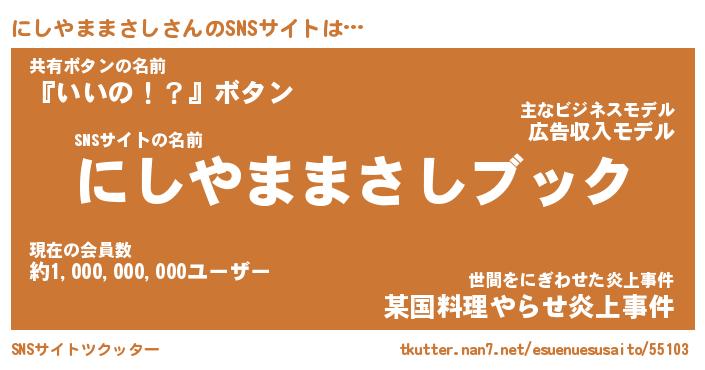| ポケモン風あだ名 | 『ニシチュウ』『ニシヤダネ』 |