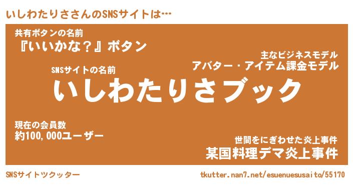 | 男性向けラノベタイトル風あだ名 | 『イシワタリサアートオンライン』 |