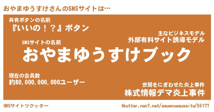 | 胡散臭い通販商品みたいなあだ名 | 『億万長者になれる霊験あらたかなお札…その名も「おやまゆうすけ」』 |