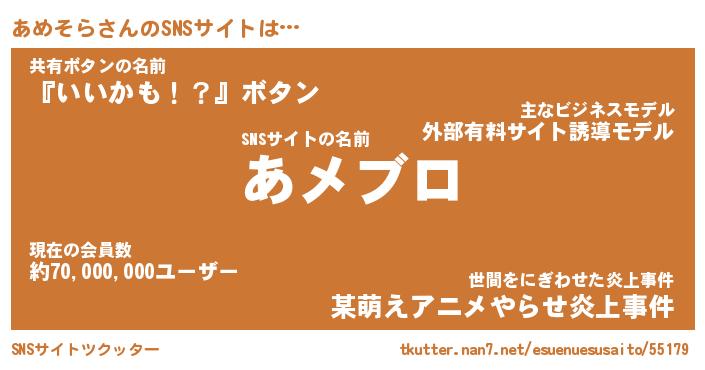 | 肩書あだ名 | 『あめそら社長』『あめそら大統領』 |