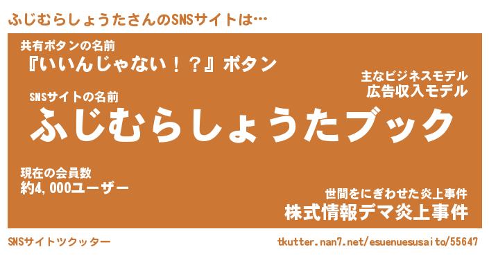 | 男性向けラノベタイトル風あだ名 | 『フジムラショウタアートオンライン』 |