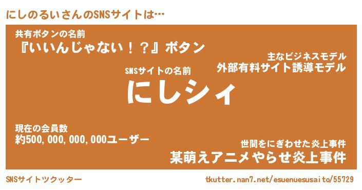 | 男性向けラノベタイトル風あだ名 | 『にしのるいの憂鬱』 |