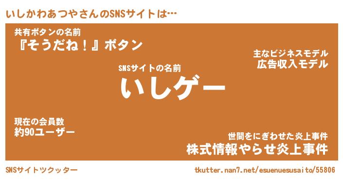 | 肩書あだ名 | 『いしかわあつや社長』 |