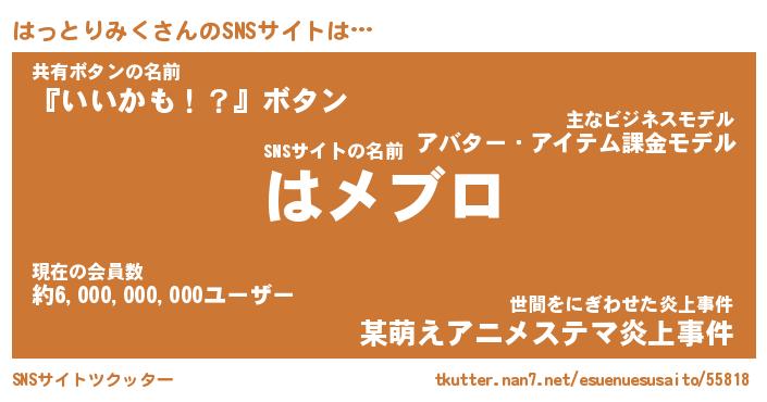 | 胡散臭い通販商品みたいなあだ名 | 『モテモテ間違いなし水晶球…その名も「はっとりみく」』 |