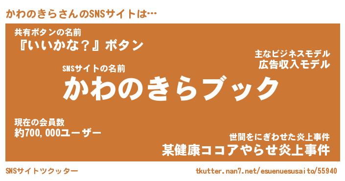 | 男性向けラノベタイトル風あだ名 | 『カワノキラアートオンライン』 |