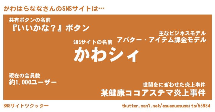 | 肩書あだ名 | 『かわはらなな社長』『かわはらなな班長』 |