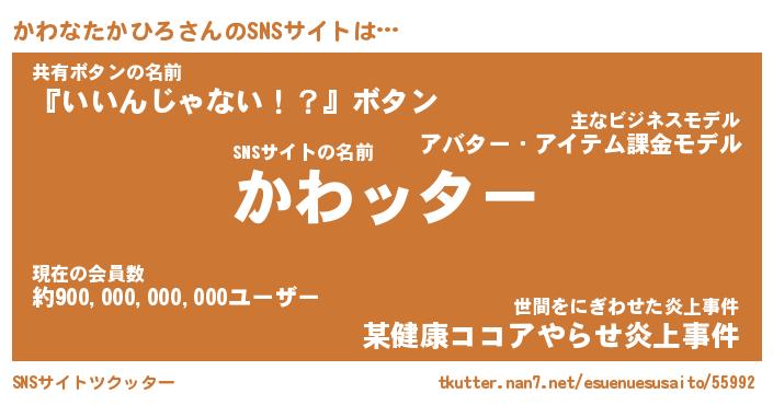 | 胡散臭い通販商品みたいなあだ名 | 『億万長者になれる水晶球…その名も「かわなたかひろ」』 |