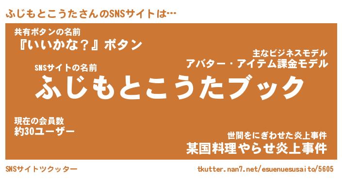 | 男性向けラノベタイトル風あだ名 | 『フジモトコウタアートオンライン』 |