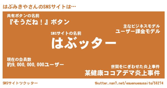 | 伝説のあだ名 | 『封印されしスナイパーはぶみきや』 |