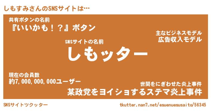 | 胡散臭い通販商品みたいなあだ名 | 『億万長者になれるブレスレット…その名も「しもすみ」』 |