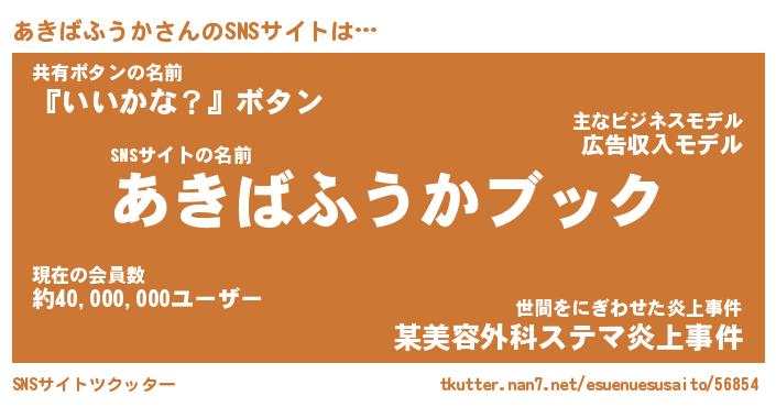 | 恥ずかしいあだ名 | 『プリティーあきばふうか』『あきっちょ』 |