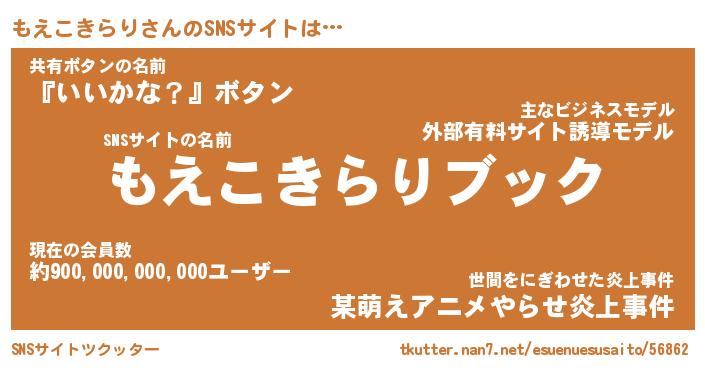 | ツイッター | もえこきらりさんのツイッターID『dendenmushi_kun』 |