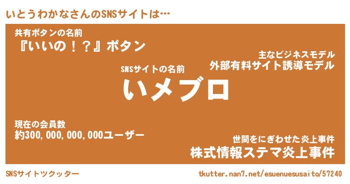 | 男性向けラノベタイトル風あだ名 | 『イトウワカナアートオンライン』 |