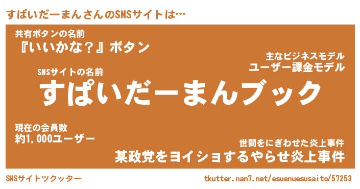 | 伝説のあだ名 | 『封印されしスナイパーすぱいだーまん』 |