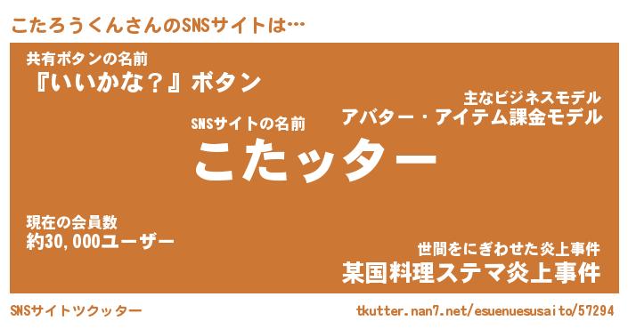 ヘコむあだ名 | 『こたもー』『酢こんぶ』『こたお』 |